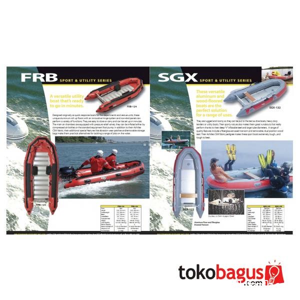 Perahu karet merk Achiles buatan dari negara Jepang dengan kualitas internasional dan bermaterial hypallon sehingga mempunyai garansi 2 tahun karena kekuatan materialnya mencapai hingga lebih dari 10 tahun di bandingkan material PVC.